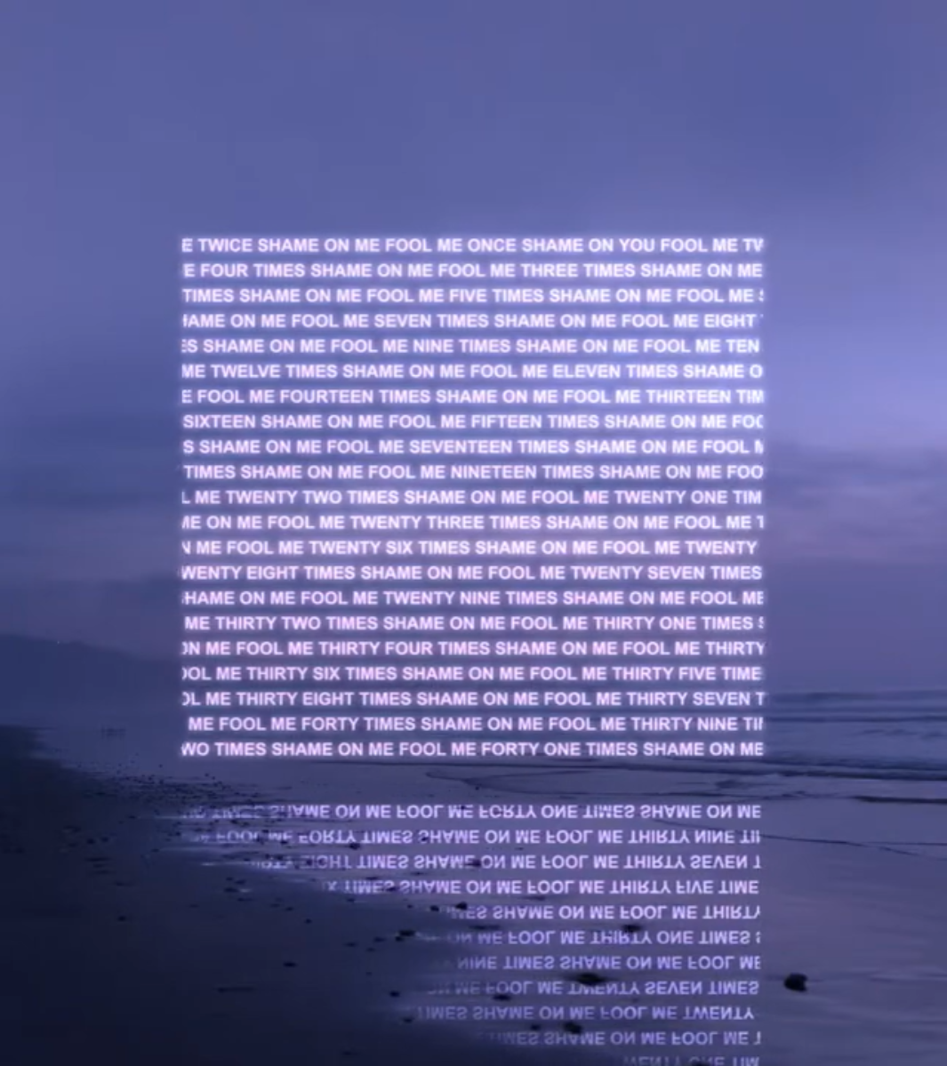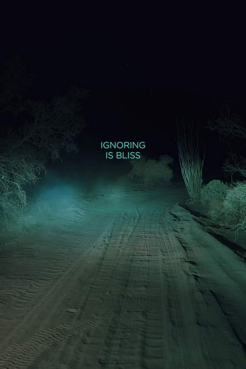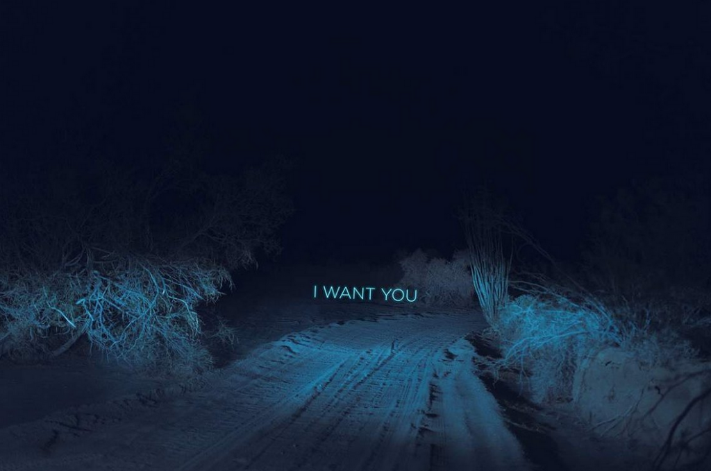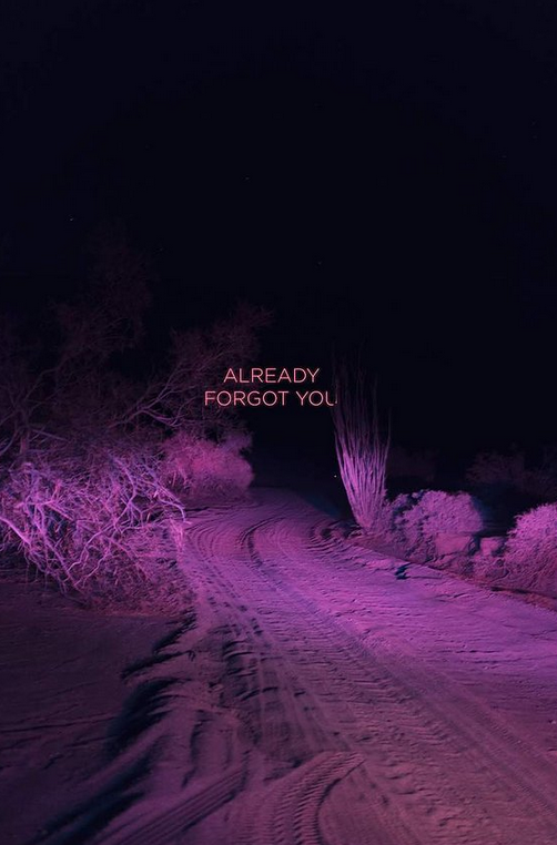 In images 5-7 we can see a singular shoot which has been digitally manipulated with HUE shifting and experimental 3D super-imposed typography with escence of heartbreak in the meaning of the text which links back to her general ethos stated on her personal website. These images seem to be taken a car ride through a barren desert, we can see tire tracks of previous drives and the trail seems to be lit purely by the lights of a vehicle, creating an ominous and mysterious feeling of the distance that we cannot see. These images almost feel like we are inside the mind of the artist and that we are traveling their thoughts.